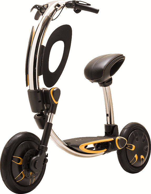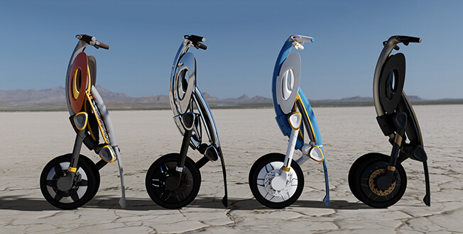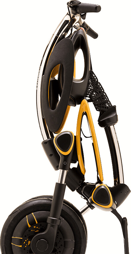 El patinete está diseñado para su uso en ciudades. Tiene un aspecto futurista y elegante, con numerosas innovaciones para la seguridad en el tráfico urbano.